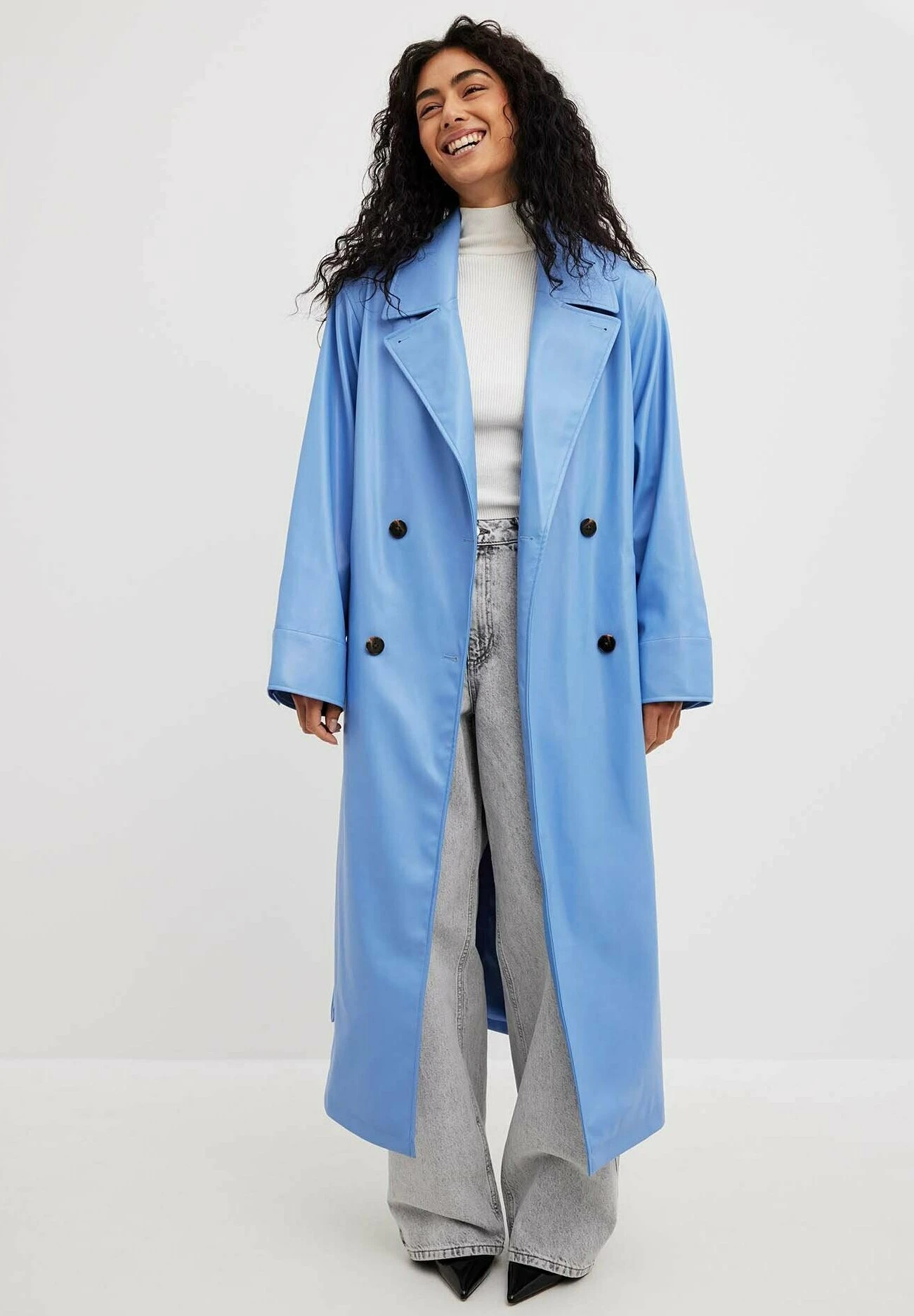 NA-KD Mit Schulterpolstern – Trench – Blue